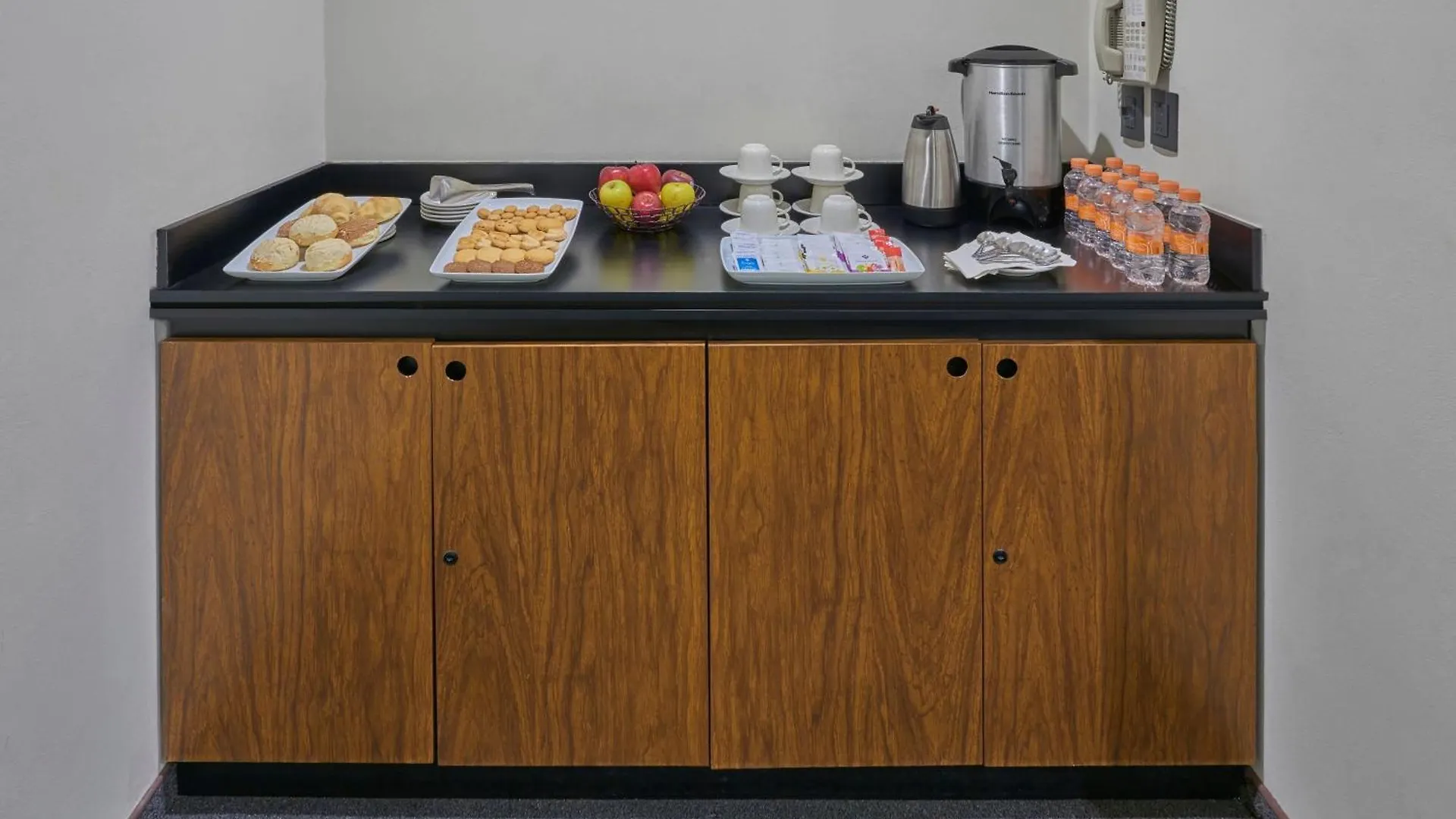 Se sirve desayuno con café fresco, fruta fresca y pan.