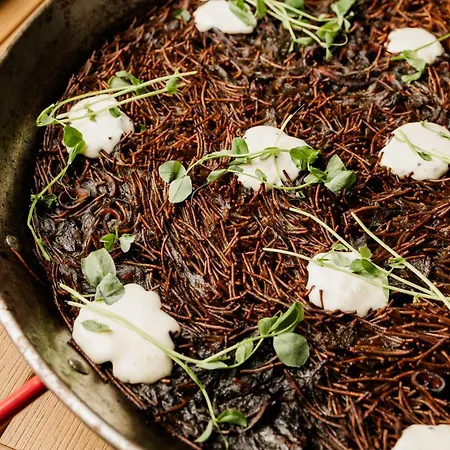 Los huéspedes están invitados al restaurante Desayunos para disfrutar de la alta gastronomía.